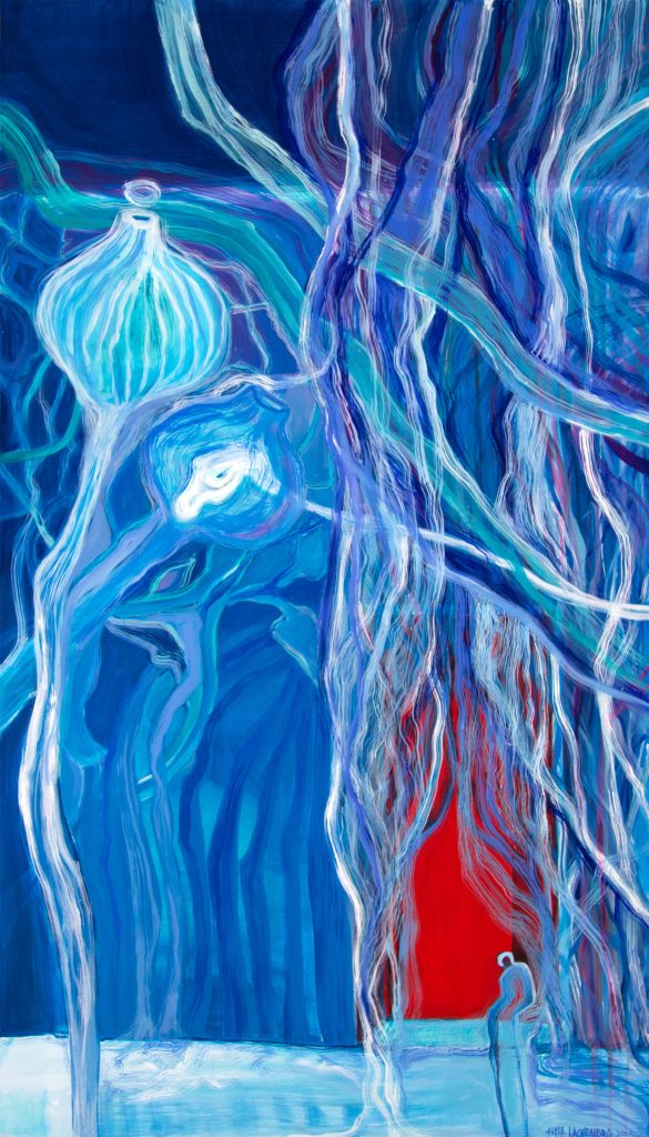 „Przejście ” z cyklu Korzenie Świadomości , 2025, – olej, 140 cm x 80cm – DOSTĘPNY